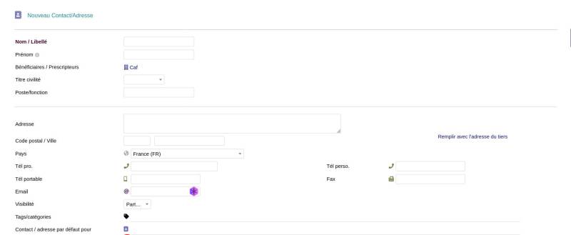 On arrive ainsi sur la page de création de contact au sein de la structure
